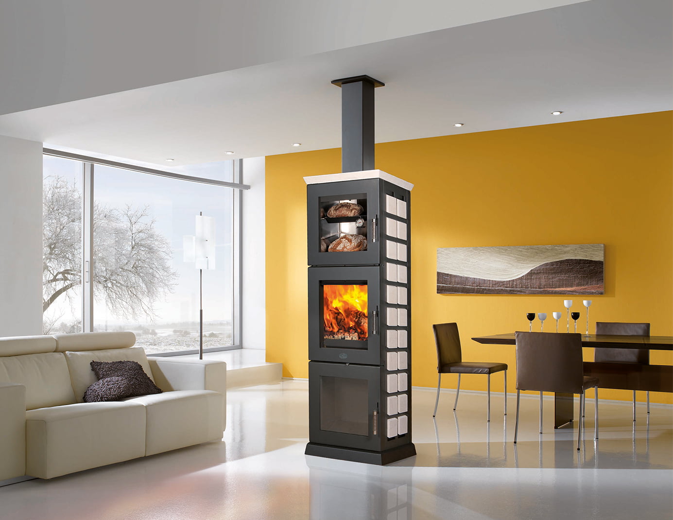 Dimensjoner på 172,5 (h) x 55 (b) x 45 (d) cm Florenz BF har et effektområde på 3,3 – 6,5 kW ved vedforbrenning og 7,5 / 11 kW ved pelletsforbrenning. Med denne viser den 293 kg på vekten. Modellen Florenz BF oppnår energieffektivitetsklassen A+.