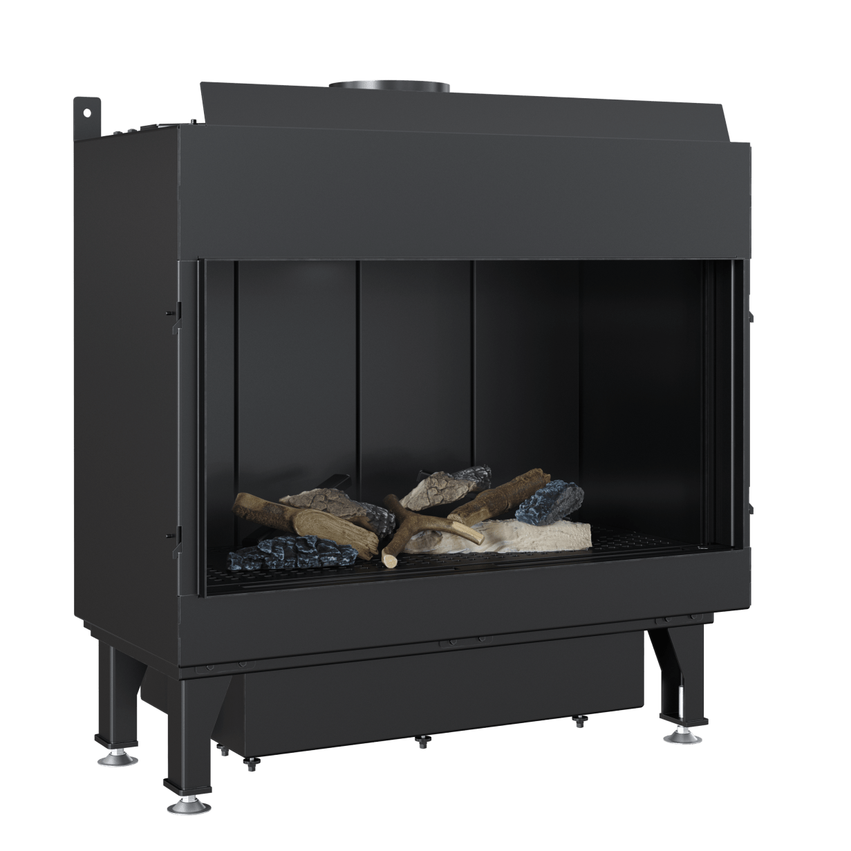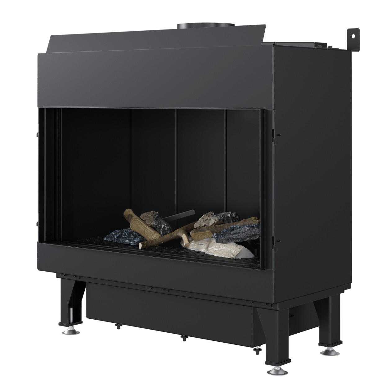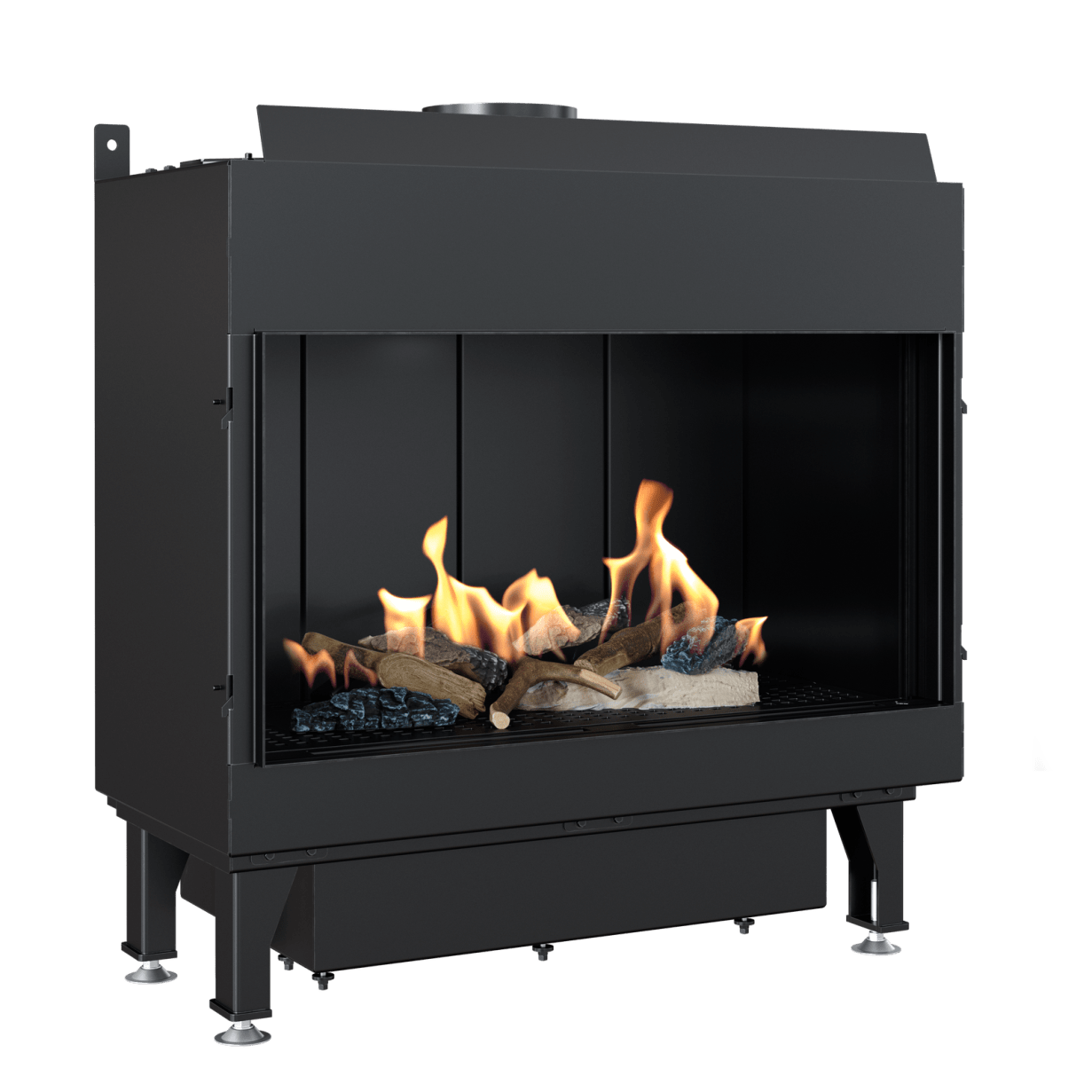 Den termostatiske fjernkontrollen gir full kontroll over flammer og temperatur. Innsatsen kan drives med både naturgass og LPG og krever ikke tradisjonell skorstein. Det koaksiale kanalsystemet gjør installasjonen enkel – røret kan føres gjennom vegg eller tak.