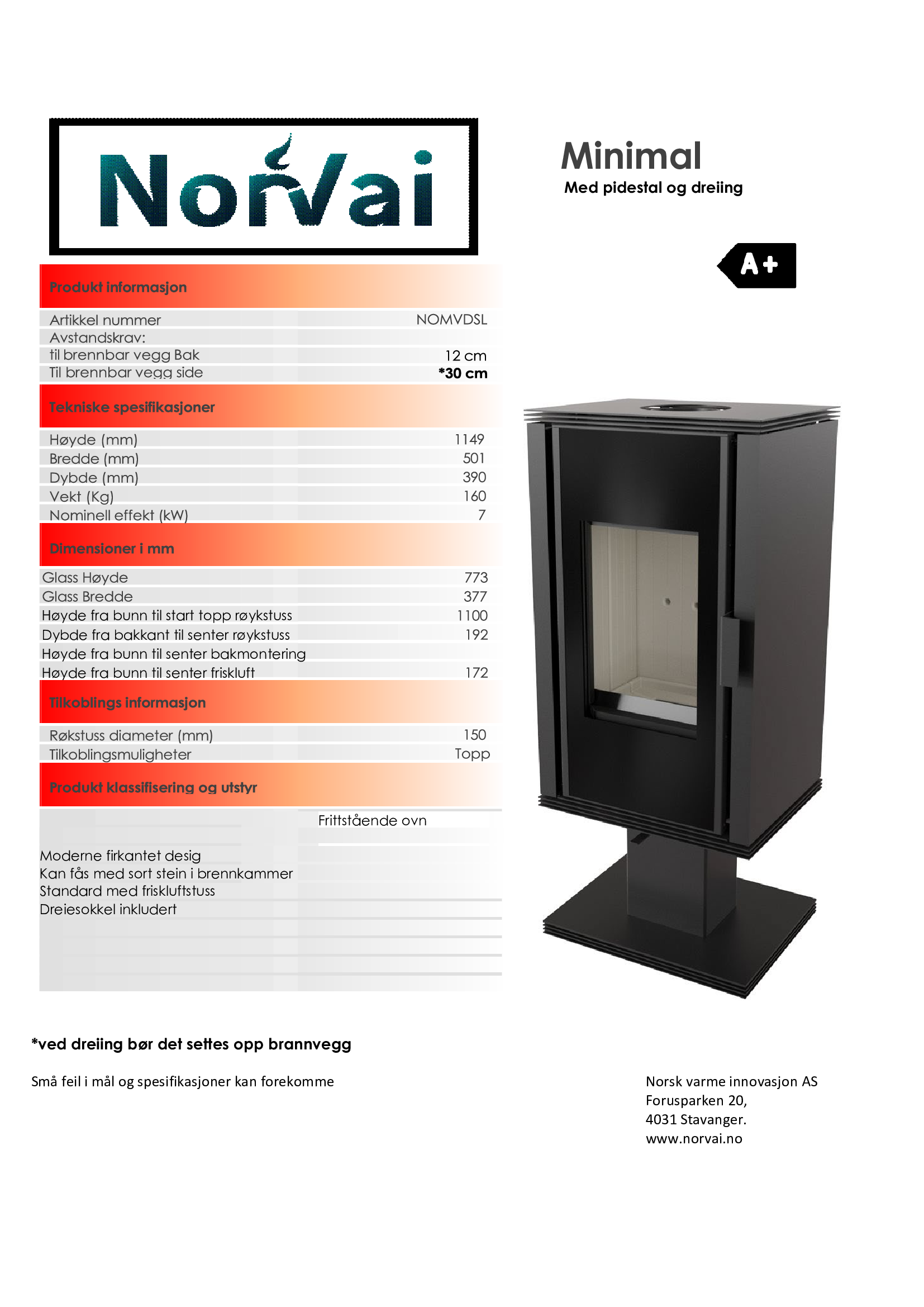 Norvai frittstående ovner er nøye utformet for å passe inn i en rekke forskjellige hjem. Denne ovnsserien deler samme brennkammer, men skiller seg ut ved å tilby varierte sokler og dørtyper. Enten du foretrekker en enkel og diskret stil eller ønsker at ovnen skal være i sentrum, da gir Norvai deg valget. Du kan velge mellom ståldører for et klassisk uttrykk eller komplett glassdør for et mer moderne preg på ovnen. Hvis du ønsker å bryte med den tradisjonelle svarte ovnen, kan du til og med velge en ovn med flisdekor i ulike farger.