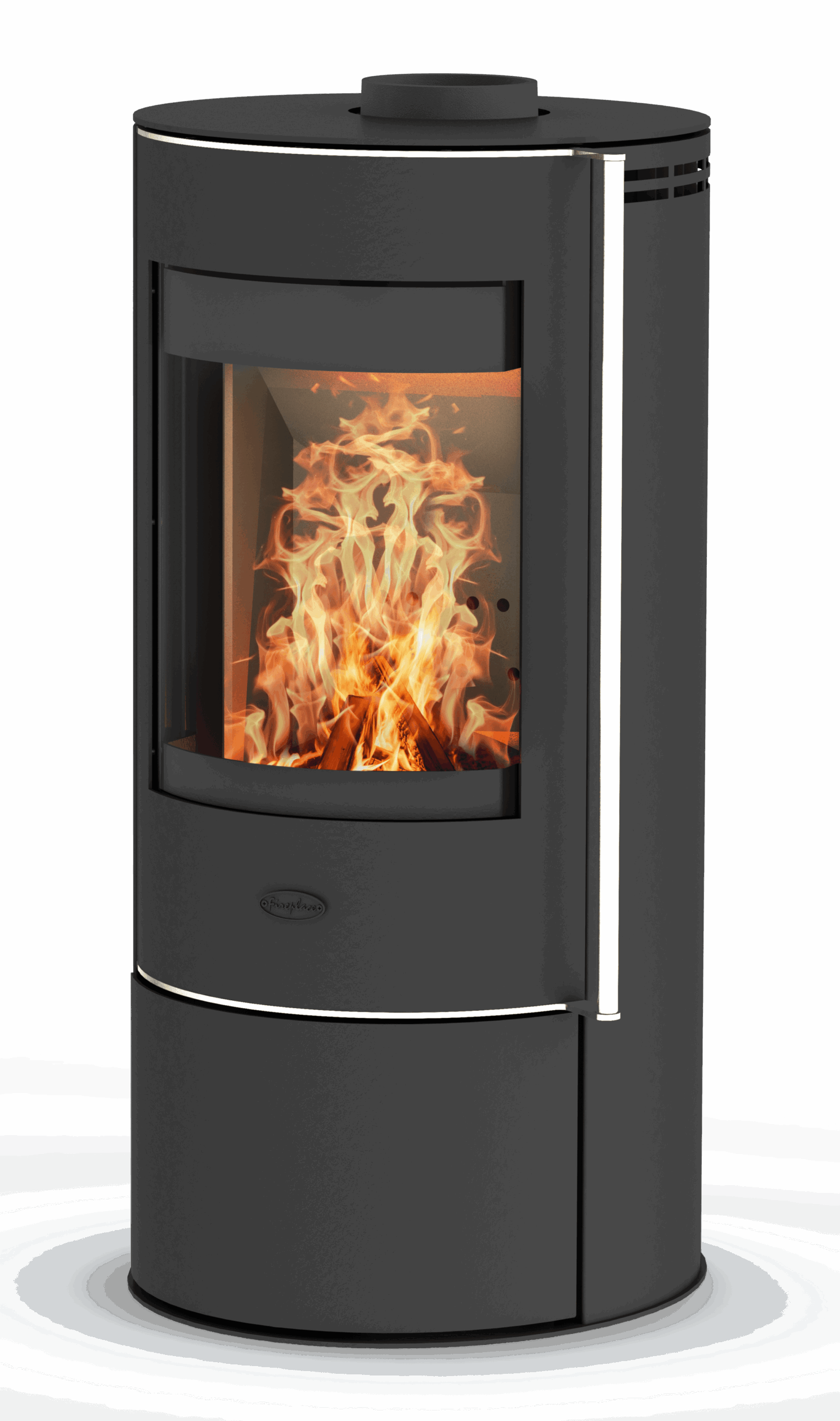 Det store, buede glasset lar deg nyte flammene fra denne flotte ovnen.