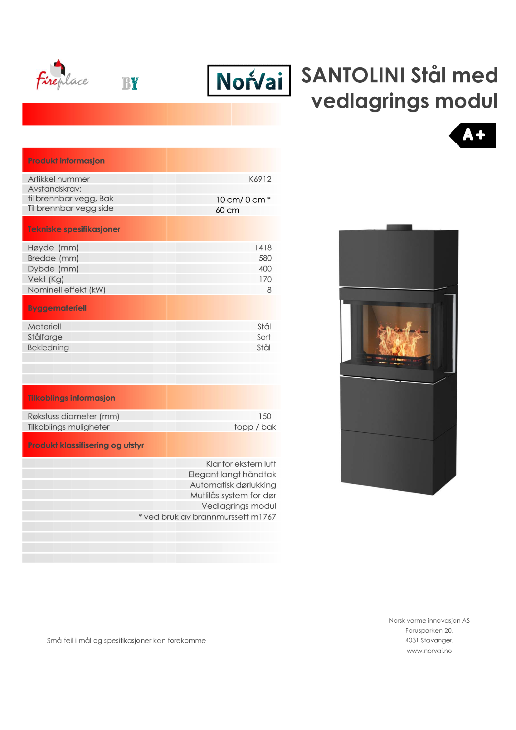 Santolini Stål skiller seg ut med sitt moderne utseende og imponerer med et ekstra bredt brennkammer. Den har et frontglass og to sideglass med et effektivt glassrengjøringssystem som sørger for klart innsyn i flammene. En kontinuerlig luftstrøm holder glasset rent og klart. Ovnen er utstyrt med varmelagringssteiner, noe som gir en god og jevn varme etter fyring.