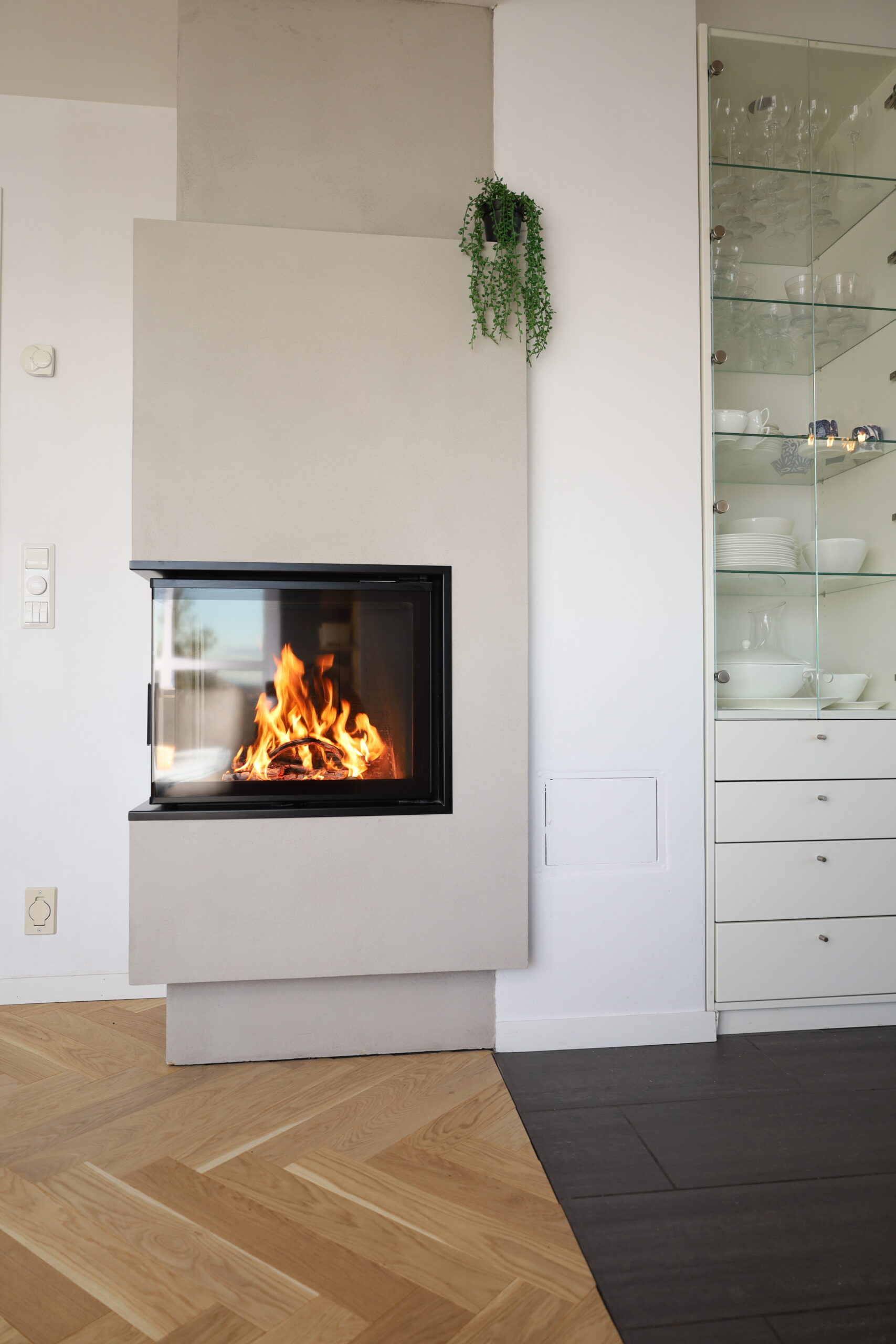Det nye uttrekkssystemet på dørene sørger for at dørene åpnes enkelt og elegant, og fremfor alt en nesten lydløs åpning og lukking av dørene. Et sofistikert dørtrykk sikrer en perfekt tetthet i ovnen. Den innovative løsningen på luftspyling av glassene, gjør at glassene alltid er skinnende rent. Luften hentes inn til peisinnsatsen gjennom bakplaten i brennkammeret. Dette sikrer en høy lufttemperatur for glass spylingen og gir en saktere luftstrøm.