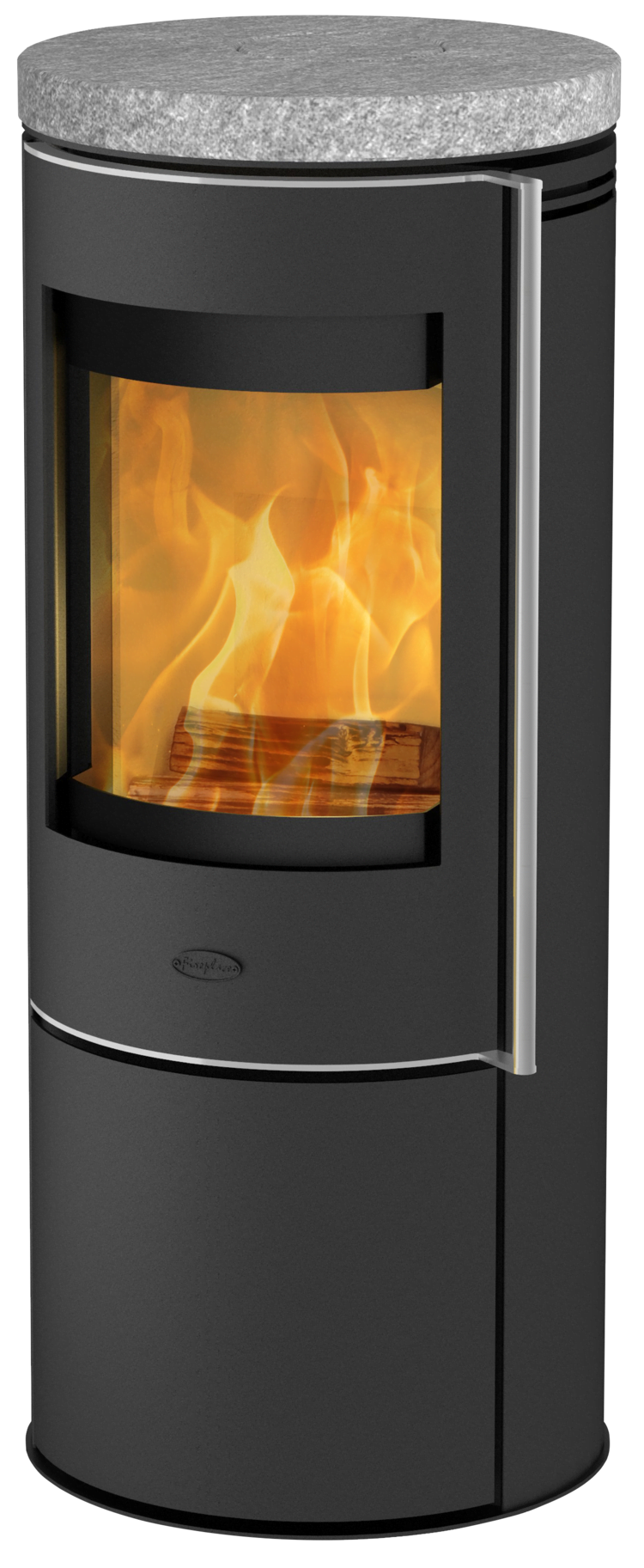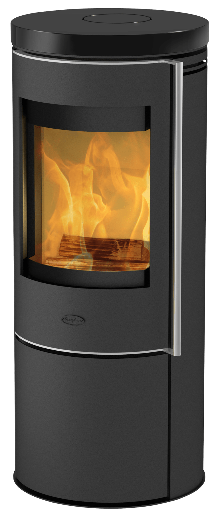 Det store, buede vinduet lar deg nyte flammene fra denne flotte ovnen.